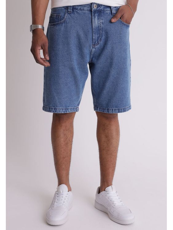 Bermuda jeans regular azul médio