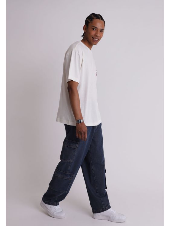 Calça jeans baggy com bolsos cargo