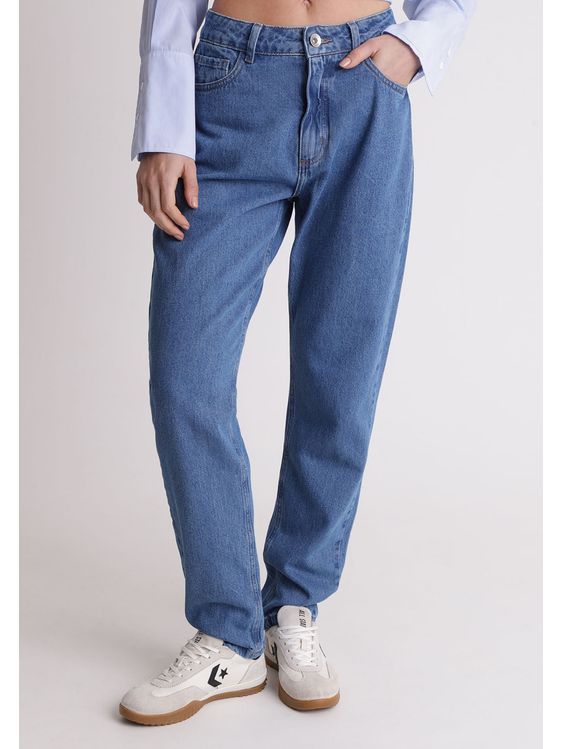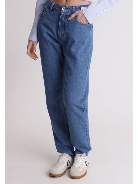 Calça jeans mom cintura média