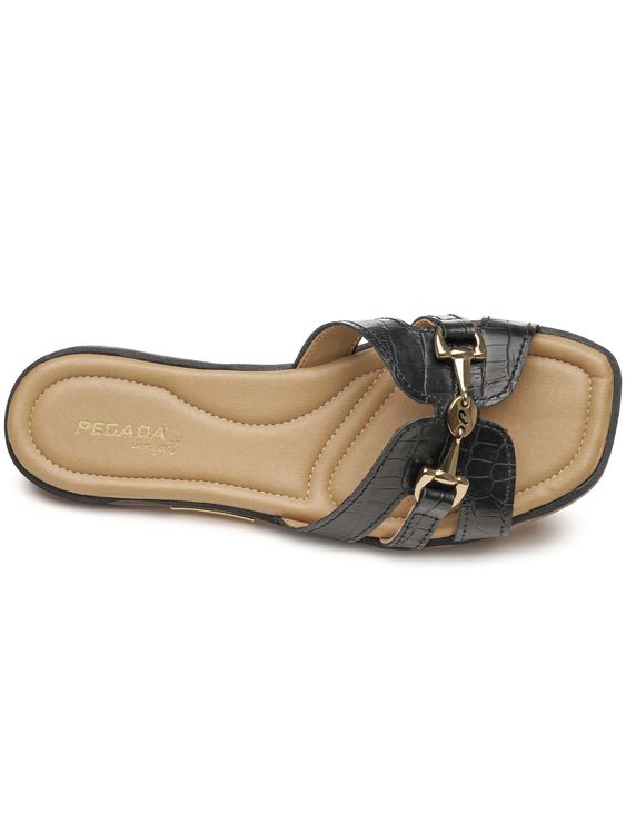 Chinelo Pegada Feminino em Couro Preto 233555-02