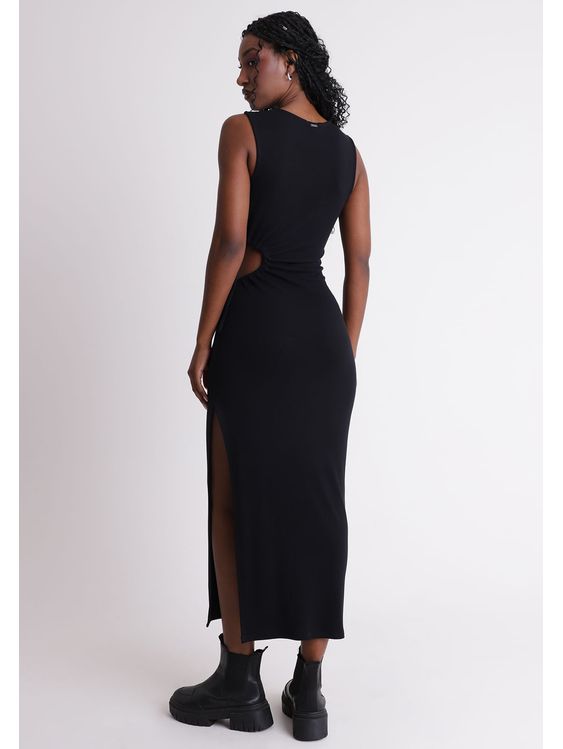 Vestido midi cut out na lateral